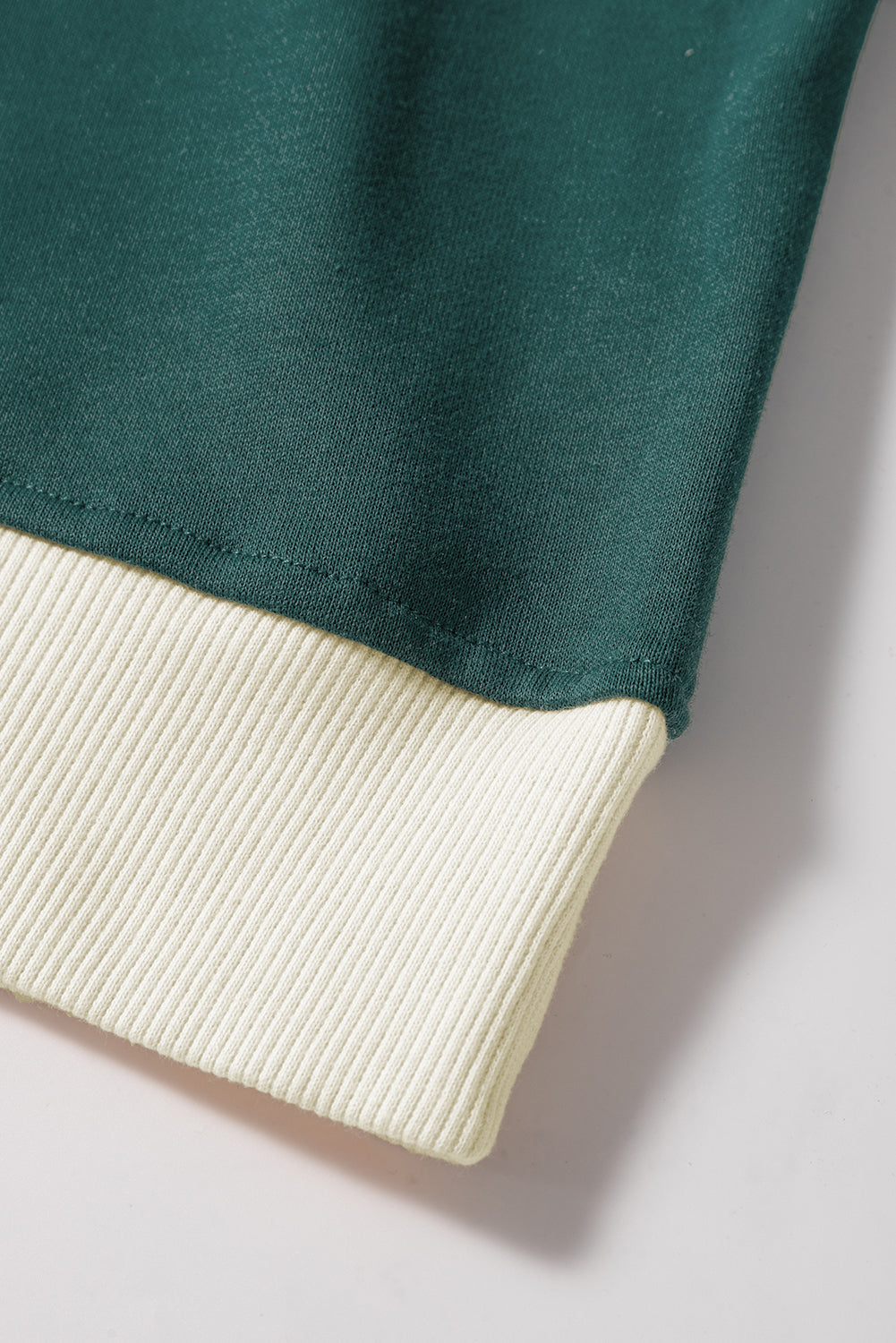 Evergreen Color Contrast Loose Pullover and Lace-up Waist Skort Set